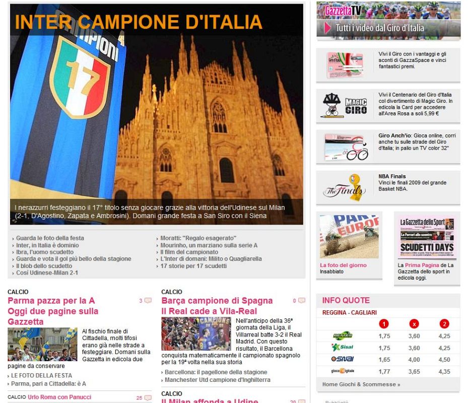 17.05.2009Incluso en el extranjero ha dejado huella la Liga del Barça, como refleja la web de 'La Gazzetta dello Sport', y eso que competía con el 'scudetto' logrado por el Inter.RTVE.es