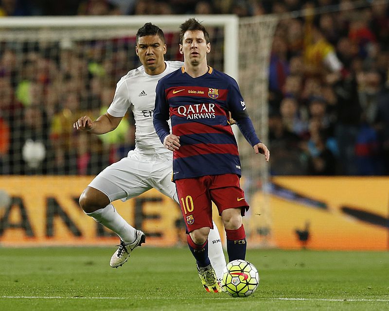 Leo Messi, del Barça, con Casemiro, del Madrid, en un momento del partido