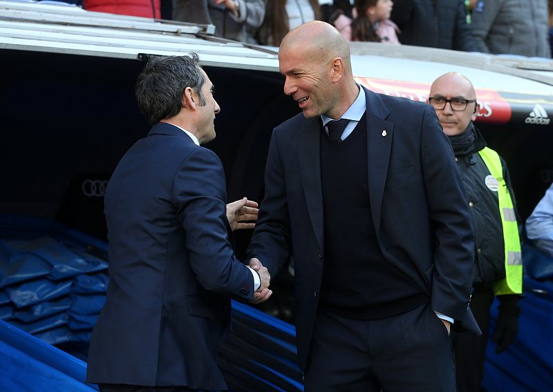 23.12.2017Los entrenadores de Madrid y Barça, Zidane y Valverde, se saludan deportivamente antes del inicio.