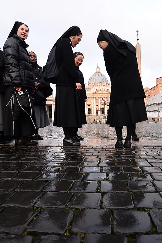 Un grupo de religiosas hace cola para asistir a misa en la Basílica de San Pedro.