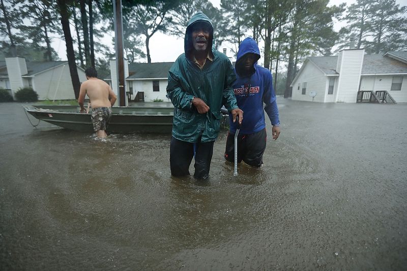 Voluntarios de Carolina del Norte rescatan a residentes en New Bern. El huracán se ha convertido en tormenta digital pero las autoridades advierten que "lo peor está por llegar".