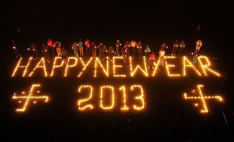 31.12.2012Indian sportsmen of Madan mohan malviya stadium, light candles to welcome the New Year in Allahabad on December 31, 2012. Sydney kicked off a wave of dazzling firework displays welcoming in 2013, from Dubai to Moscow and London, with long-isolated Yangon joining the global pyrotechnics for the first time. AFP PHOTO/ Sanjay KANOJIAAFP PHOTO/ Sanjay KANOJIA