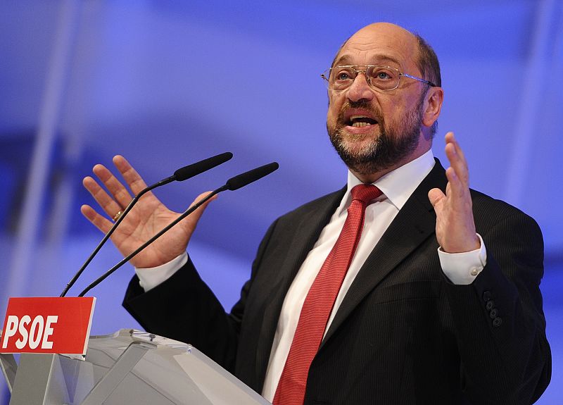 The head of the Socialist block at the European Parliament German Martin Schultz gives a speech during the Spain's Socialist party (PSOE) congress in Madrid on September 30, 2011.