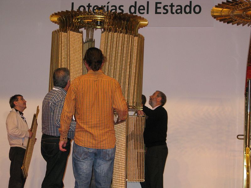 • Personal del Organismo de Loterías comprueba que el mecanismo de la tolva funciona correctamente.