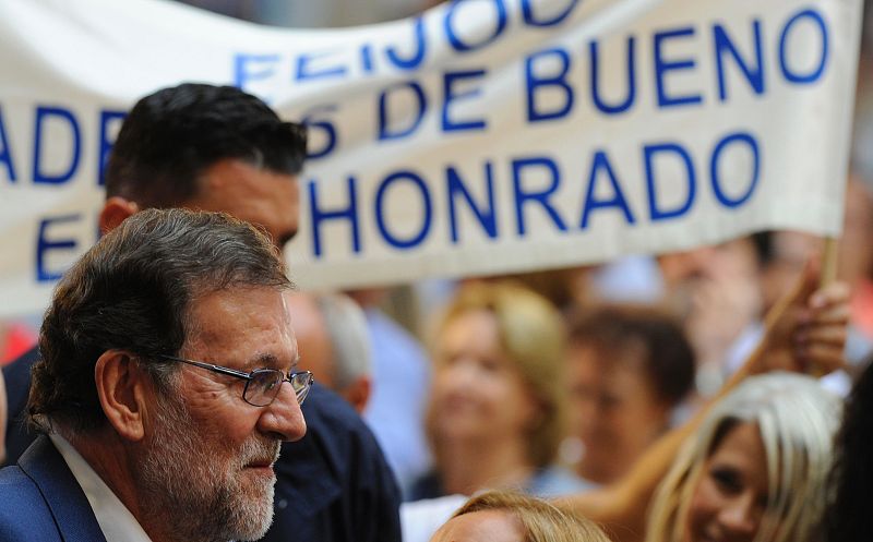 23.09.2016"Feijóo, además de bueno eres honrado", rezaba una pancarta fervorosa con el candidato del PP a presidir la Xunta de Galicia, acompañado del líder de su partido, Mariano Rajoy, en un mitin en la plaza de toros de Pontevedra.noticias