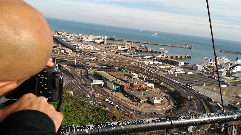 • En primer plano, la rotunda cabeza de Nacho Cañizares. Tras él, el puerto de Dover