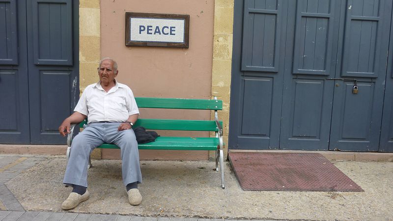23.06.2014Greco-chipriota sentado en un banco de la calle Ledra, cerca del controlEN PORTADA