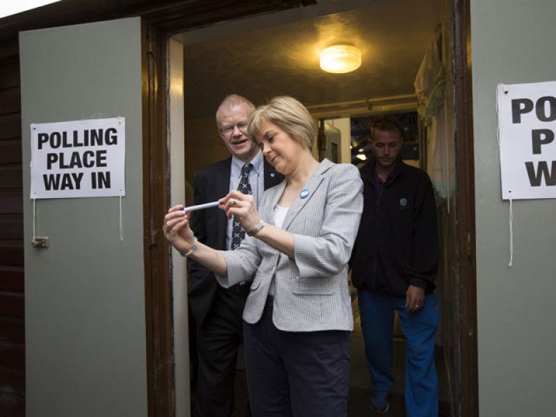 La viceministra principal de Escocia, Nicola Sturgeon, abandona un colegio electoral