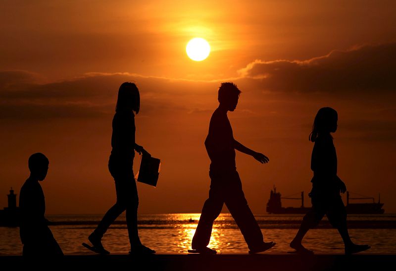 • Un muchacho filipino oberva el atardecer en la bahía de Manila (Filipinas)