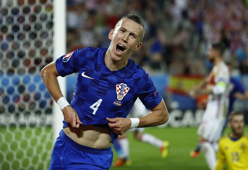 Perisic celebra su gol, que da la victoria a Croacia frente a España