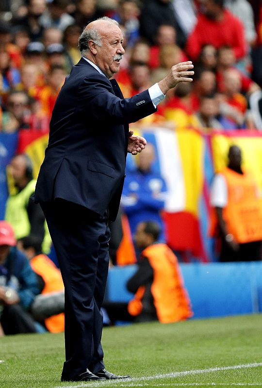 El seleccionador de España Vicente del Bosque da instrucciones a sus jugadores