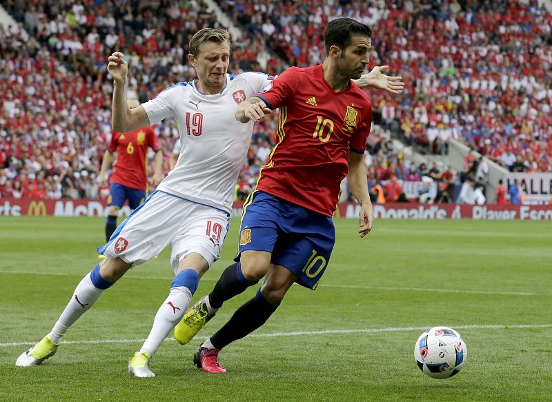 Cesc Fàbregas pugna con el checo Ladislav Krejci