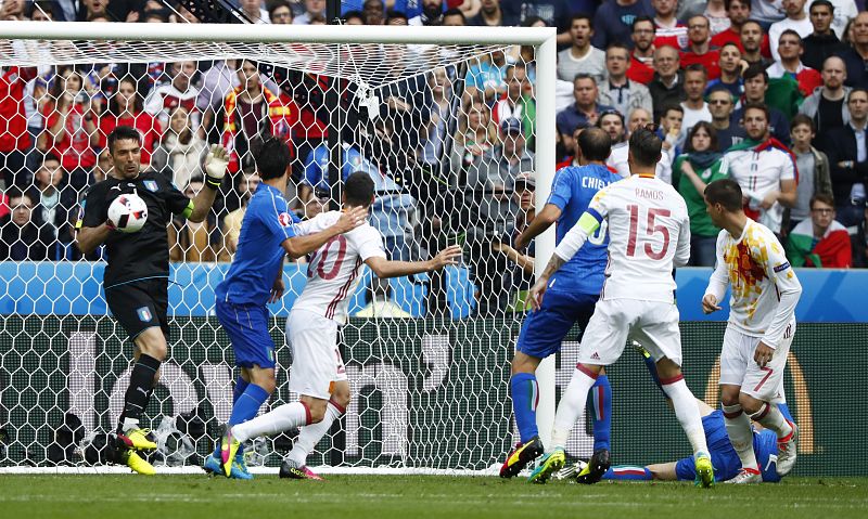 Buffon detiene la única clara de España en los primeros 60 minutos, de Morata