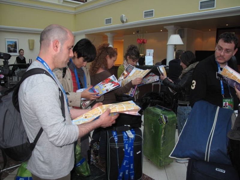 08.05.2009Todos los miembros de la delegación están mirando los mapas que ha ido repartiendo Soraya.tve