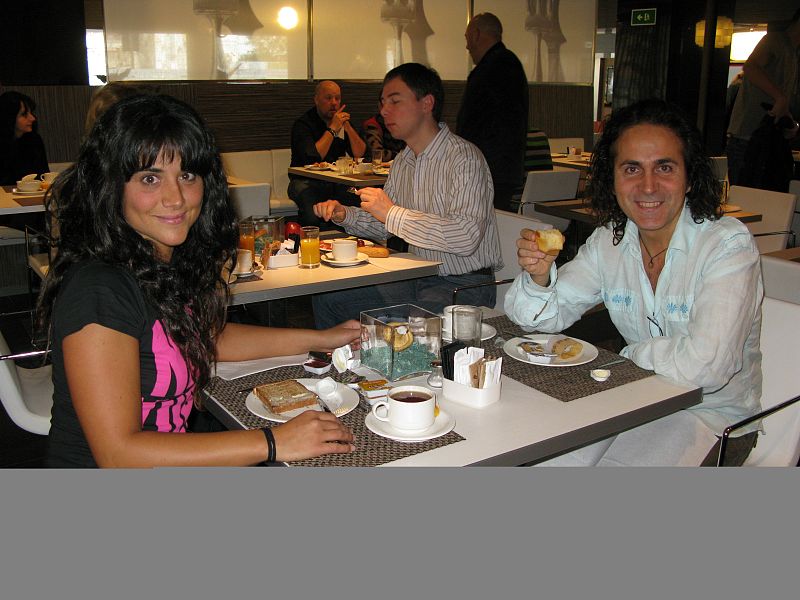 21.02.2009Virginia, desayunando con el compositor de "True Love", Rafael Artesero.tve
