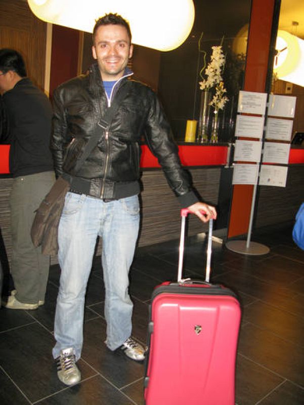 14.02.2009José García Luka, candidato a jurado, haciendo el check in en el hotel.tve -