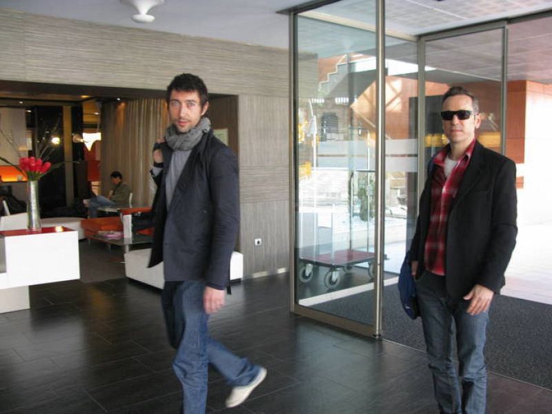 14.02.2009Toni Garrido y Mauro Canut cruzando por la puerta del hotel... están dispuestos a disfrutar de la música y de los grupos.tve -