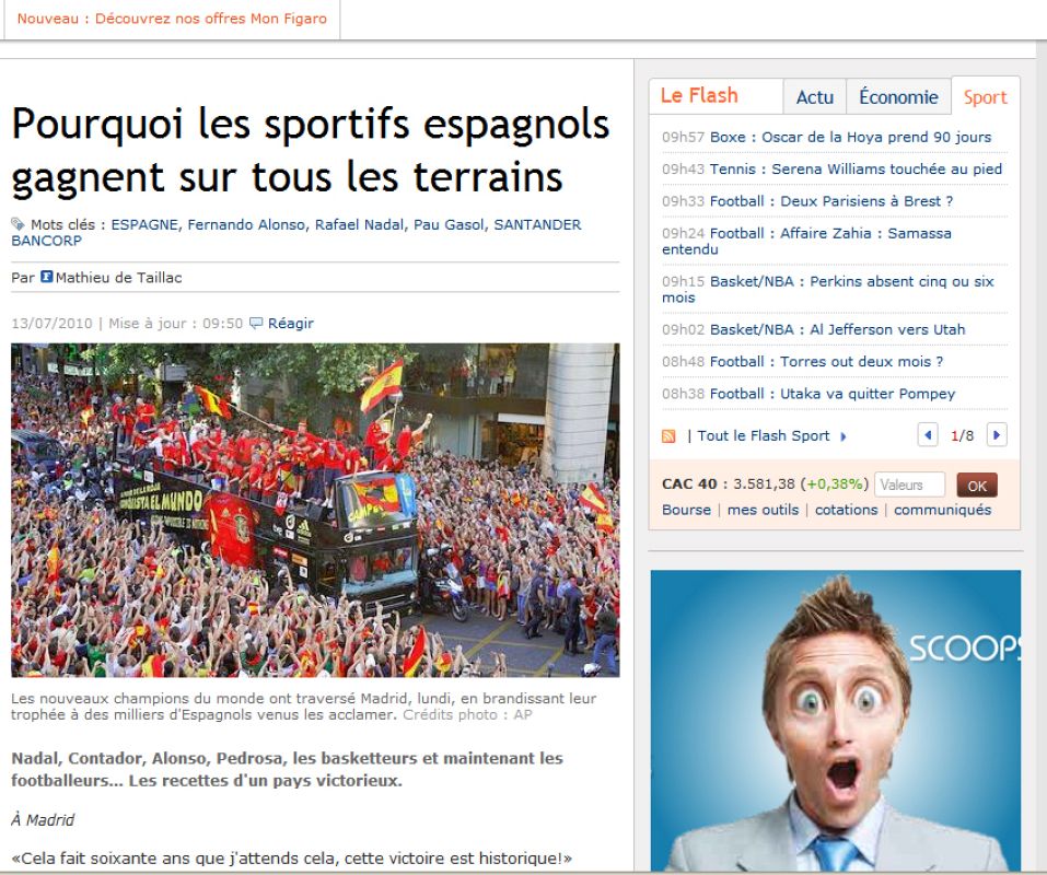 13.07.2010¿Por qué los deportistas españoles ganan sobre todos los terrenos¿, declara 'Le Figaro'. 13/07/2010noticias