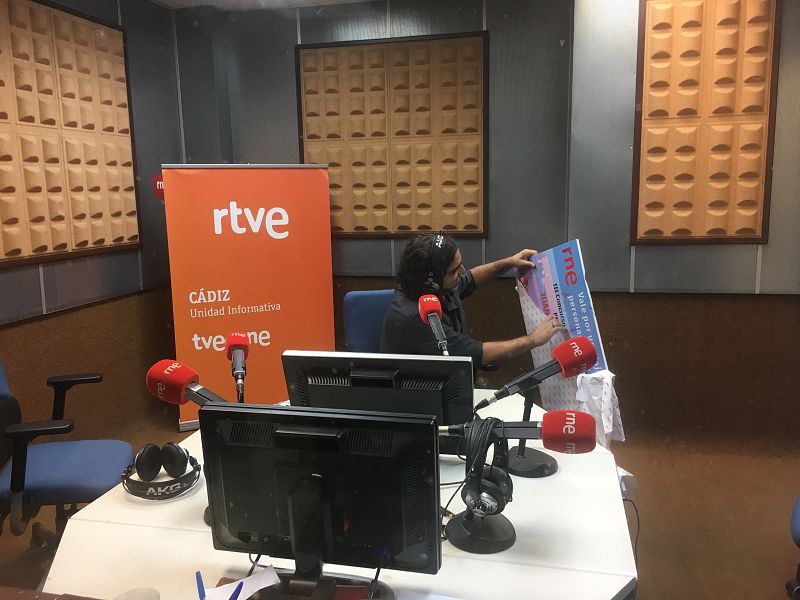 30.09.2016Alberto Puyana desenvuelve el mega vale del premio durante la entrevista.rne