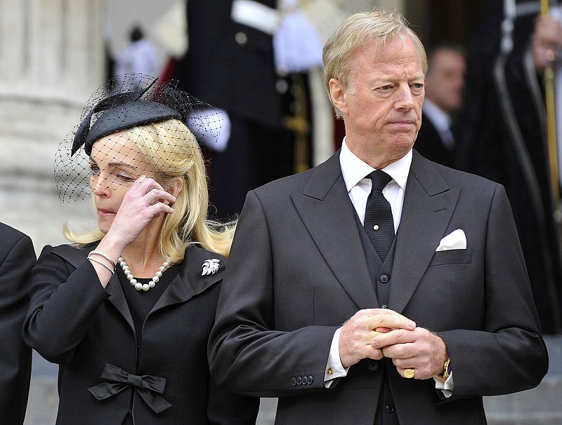 Mark Thatcher, hijo de la ex primer ministra, abandona el funeral acompañado de su mujer