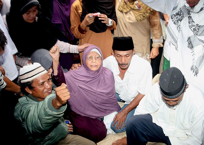 09.11.2008FRA01 SERANG (INDONESIA), 08/11/08.- Embay Badriah (c), madre del radical musulmán Imam Samudra, grita lemas durante el funeral de su hijo en Serang, Banten (Indonesia), hoy, domingo 9 de noviembre de 2008. Los tres miembros de la Yemaa Islamiya, el brazo de Al Qaeda en el sudeste asiático, fueron fusilados a medianoche en la isla-prisión de Nusakambangan, por los atentados de Bali de 2002, donde murieron 202 personas, según informó la Fiscalía General. EFE/FRANSISKUSEFE