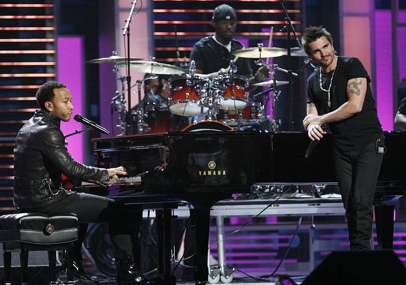 14.11.2008John Legend (L) of the U.S. and Juanes of Colombia perform at the 9th annual Latin Grammy Awards in Houston, Texas November 13, 2008. REUTERS/Mario Anzuoni (UNITED STATES)REUTERS/Mario Anzuoni