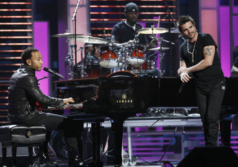 14.11.2008John Legend (L) of the U.S. and Juanes of Colombia perform at the 9th annual Latin Grammy Awards in Houston, Texas November 13, 2008. REUTERS/Mario Anzuoni (UNITED STATES)REUTERS/Mario Anzuoni -