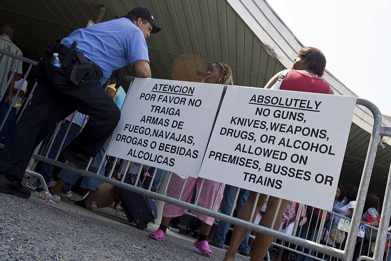 01.09.2008SBX15. NUEVA ORLEANS (EEUU), 30/08/08.- Miles de personas esperan el largo e incierto viaje que deberán enfrentar hoy, 30 de agosto de 2008, al llegar a la Terminal Unión de Pasajeros para evacuar Nueva Orleans, Luisiana (EE.UU.). El Centro Nacional de Huracanes dijo que el Huracán Gustav amenaza en convertirse en una tormenta de categoría cuatro y que amenaza la costa del Golfo de Luisiana. Autoridades de la ciudad han ordenado la evacuación inmediata de Nueva Orleans para las primeras horas del 31 de agosto de 2008. Esta es la primera evacuación de la ciudad desde la inundación provocada por el Huracán Katrina hace tres años. EFE/SKIP BOLENEFE