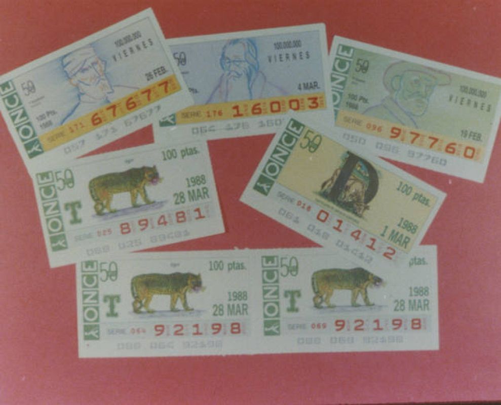 Imagen de los cupones del sorteo de la ONCE (1988)