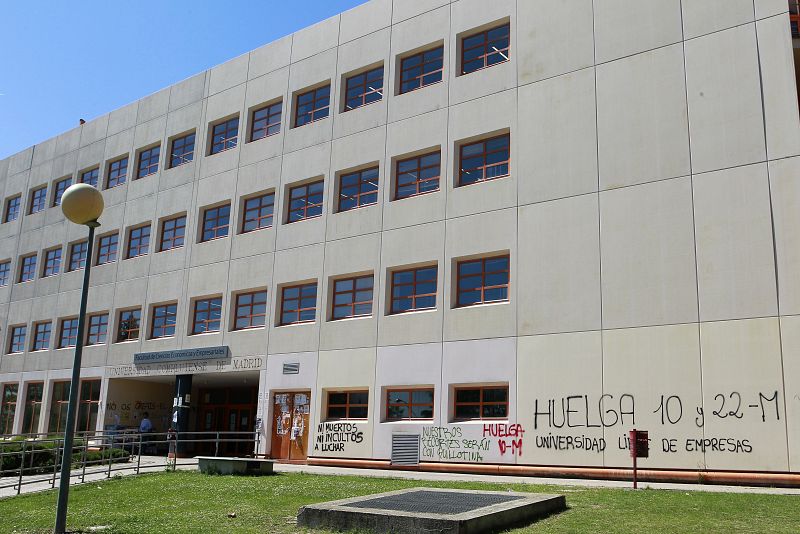 NAC43. MADRID, 22/05/2012.- Vista de la entrada a la Facultad de Ciencias Económicas y Empresariales del campus de Somosaguas de la Universidad Complutense de Madrid, durante la jornada de huelga convocada para hoy en la educación pública. EFE/Zipi