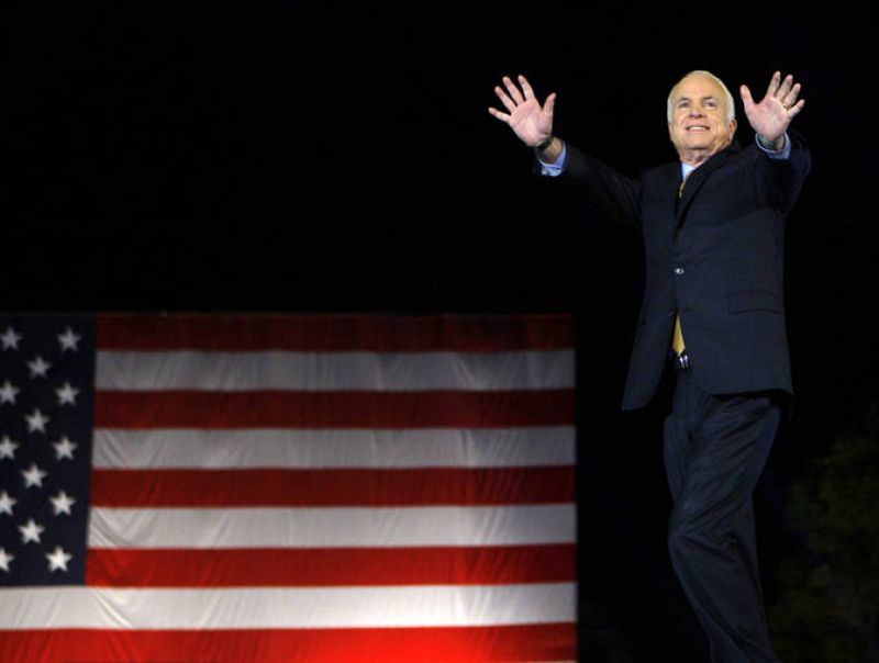 05.11.2008U.S. Republican presidential nominee Senator John McCain (R-AZ) waves as he takes the stage during his election night rally in Phoenix, November 4, 2008. REUTERS/Brian Snyder (UNITED STATES) US PRESIDENTIAL ELECTION CAMPAIGN 2008 (USA)REUTERS -