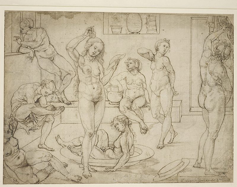 'Baño de mujer' (sobre 1520-1525). Jan Gossaert. Pluma y tinta sobre papel.