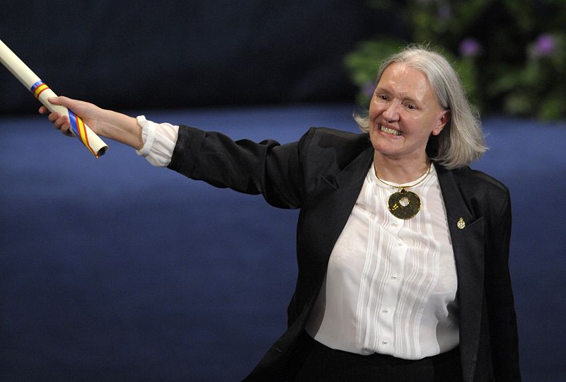 25.10.2013Dutch-American sociologist Saskia Sassen celebrates after receiving the 2013 Prince of Asturias Award for Social Sciences during the Prince of Asturias awards ceremony in Oviedo, on October 25, 2013.AFP PHOTO/ MIGUEL RIOPA