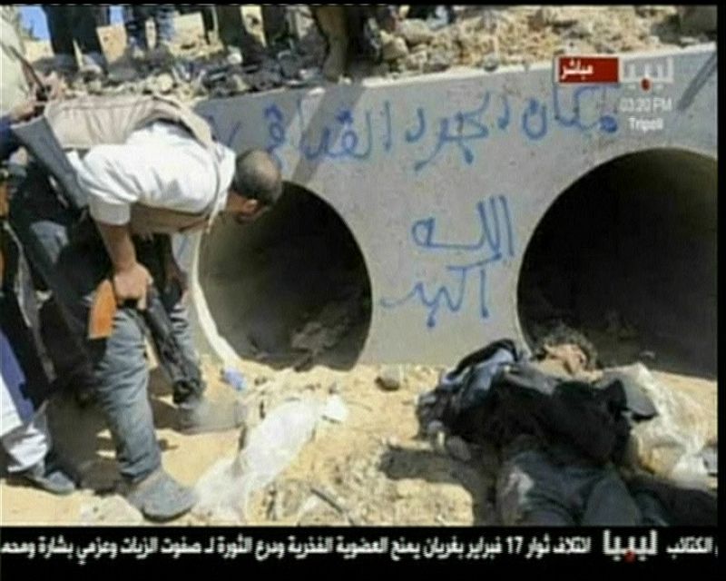 Imagen del escondite donde encontraron los rebeldes libios a Muamar el Gadafi.