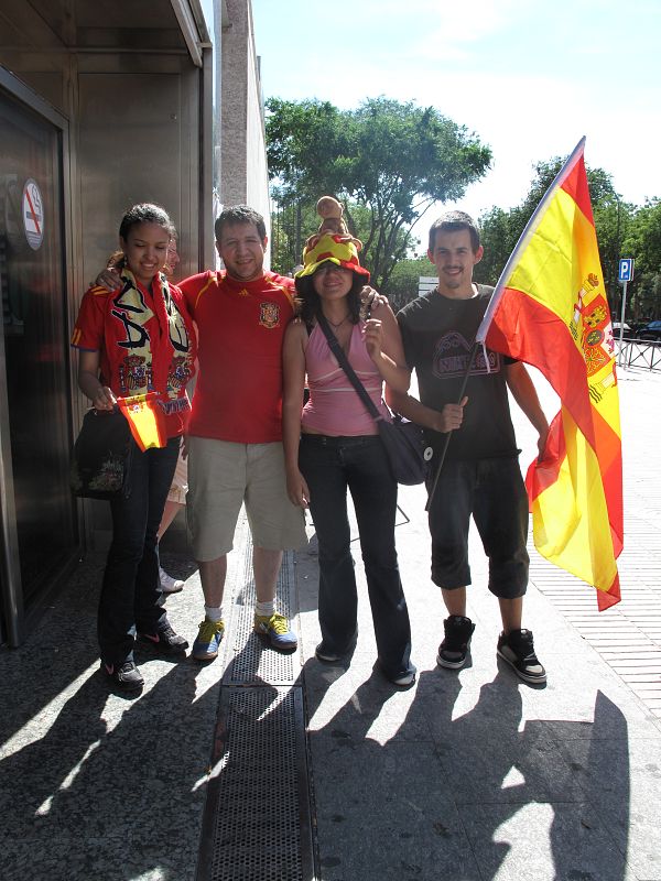 12.07.2010Este grupo de amigos recién llegado de La Coruña no ha olvidado homenajear al pulpo Paul en un sombrero.Elena Gil -