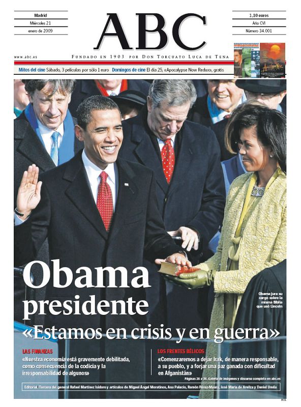 Portada de ABC tras la investidura de Obama