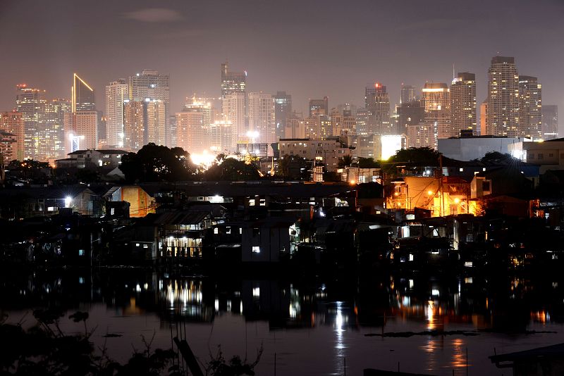 This general shot shows buildings from Manila's financial district before the lights are turned off to mark Earth Hour in Manila on March 23, 2013. Millions of people were expected to switch off their lights for Earth Hour on March 23, in a global effort to raise awareness about climate change. Since it began in Sydney in 2007, Earth Hour has grown to become what environmental group WWF says is the world's largest demonstration of support for action on carbon pollution. AFP PHOTO/ NOEL CELIS