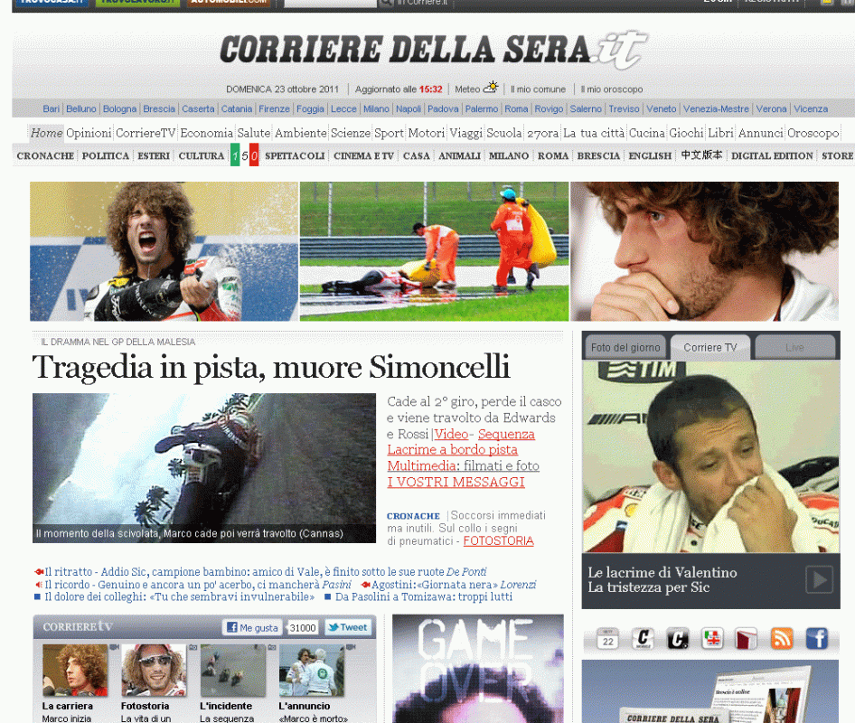 La prensa italiana destaca la trágica muerte de Simoncelli