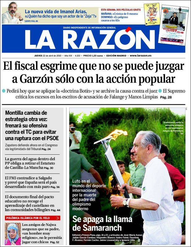 La prensa rinde homenaje a Samaranch