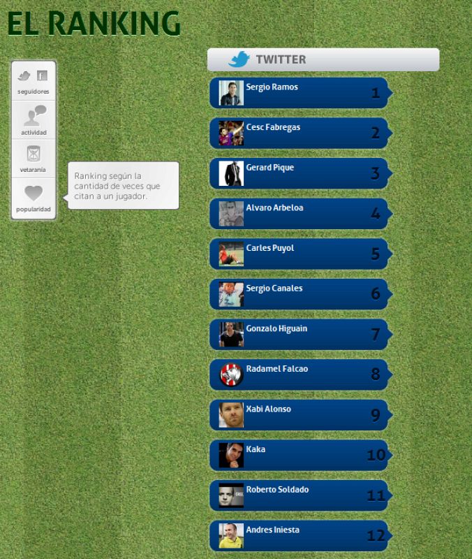 • Ránking de popularidad de los futbolistas en Twitter.