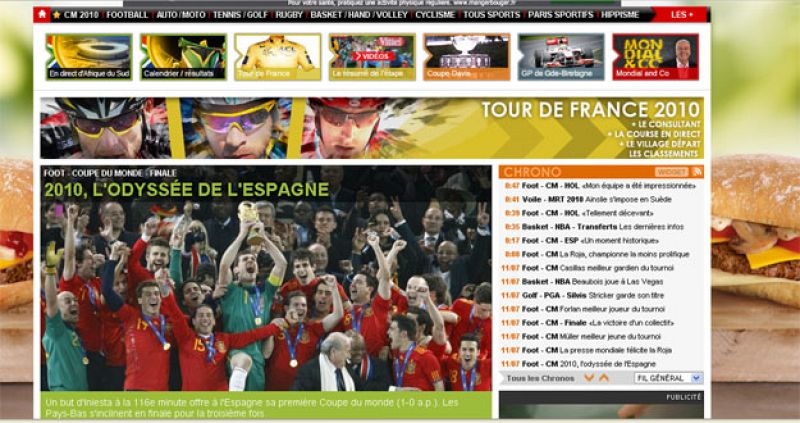 12.07.2010El autor del único gol del encuentro, Andrés Iniesta, protagoniza la portada del Mundo DeportivoRTVE.es -