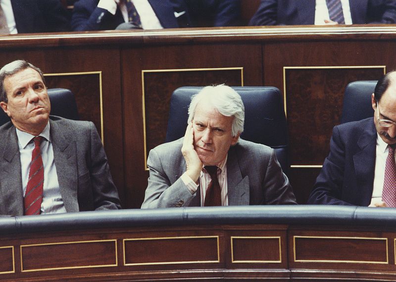 • Jorge Semprún, en 1989 en el Congreso, José Barrionuevo, Julián García Vargas