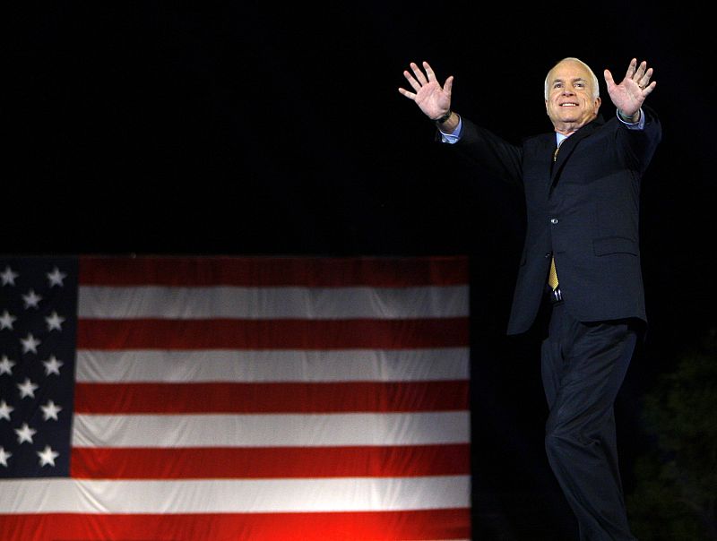 05.11.2008U.S. Republican presidential nominee Senator John McCain (R-AZ) waves as he takes the stage during his election night rally in Phoenix, November 4, 2008. REUTERS/Brian Snyder (UNITED STATES) US PRESIDENTIAL ELECTION CAMPAIGN 2008 (USA)REUTERS
