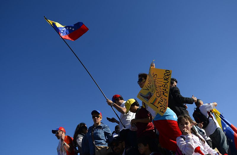 19.04.2013Las pancartas de apoyo a Maduro portadas por sus seguidores.AFP -