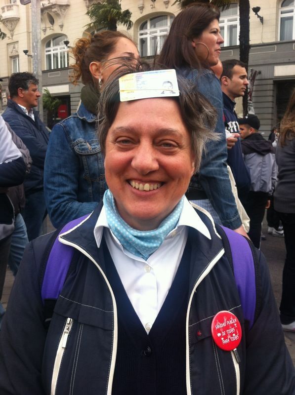 25.04.2013Inés Monroy es una manifestante que lleva el DNI en la cabeza para que "se sepa" quién es.S.Q