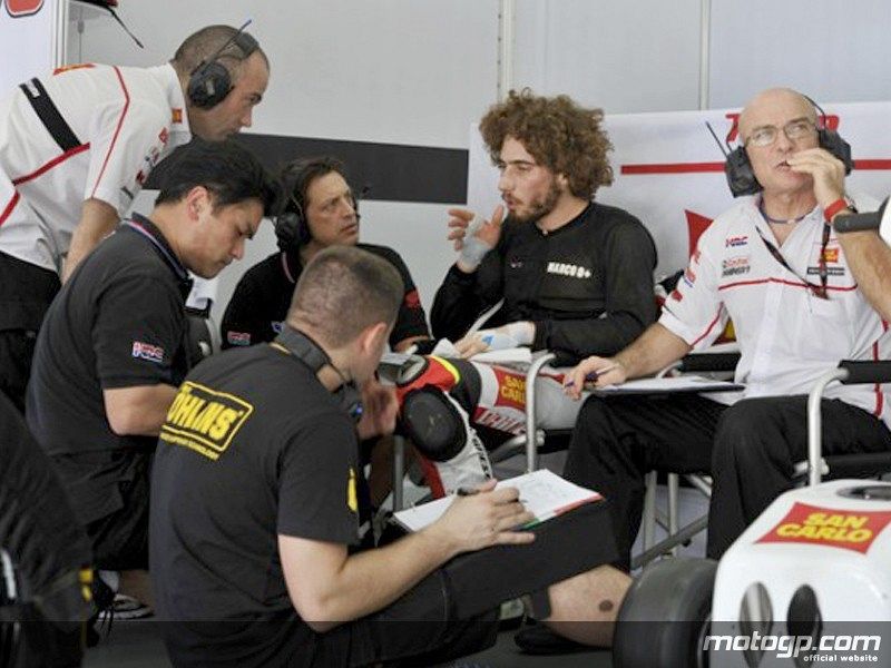 23.10.2011Simoncelli habla con sus mecánicos tras acabar con el día de test en Sepang. (3/02/2011)MOTOGP.COM