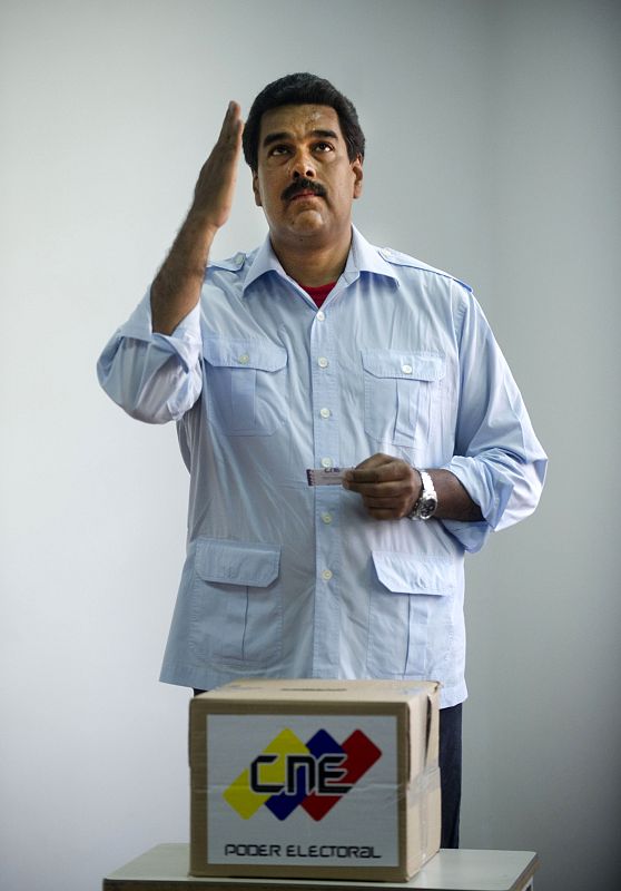 14.04.2013Venezuelan acting president and presidential candidate Nicolas Maduro assumes a praying attitude after casting his vote in Caracas, on April 14, 2013. Venezuelans flocked to the polls Sunday to vote for Hugo Chavez's successor, choosing between the handpicked heir of his socialist revolution and an opponent vowing change in the divided nation. AFP PHOTO/Raul ARBOLEDAAFP PHOTO/Raul ARBOLEDA