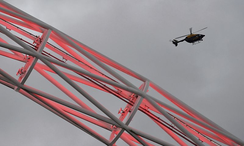 • Un helicóptero vigila el estadio de Wembley antes del partido amistoso