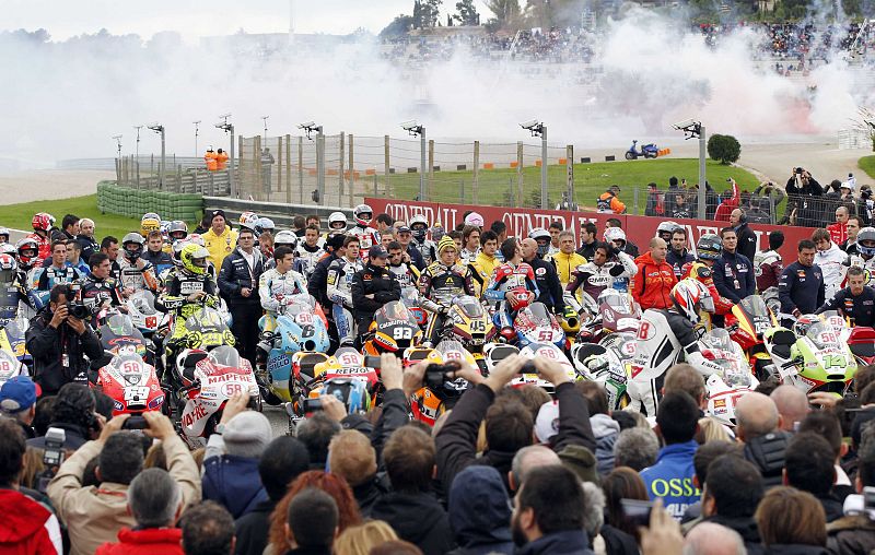 The MotoGP community pay tribute to Marco Simoncelli during the Valencia Motorcycle Grand Prix at the Ricardo Tormo racetrack in Cheste