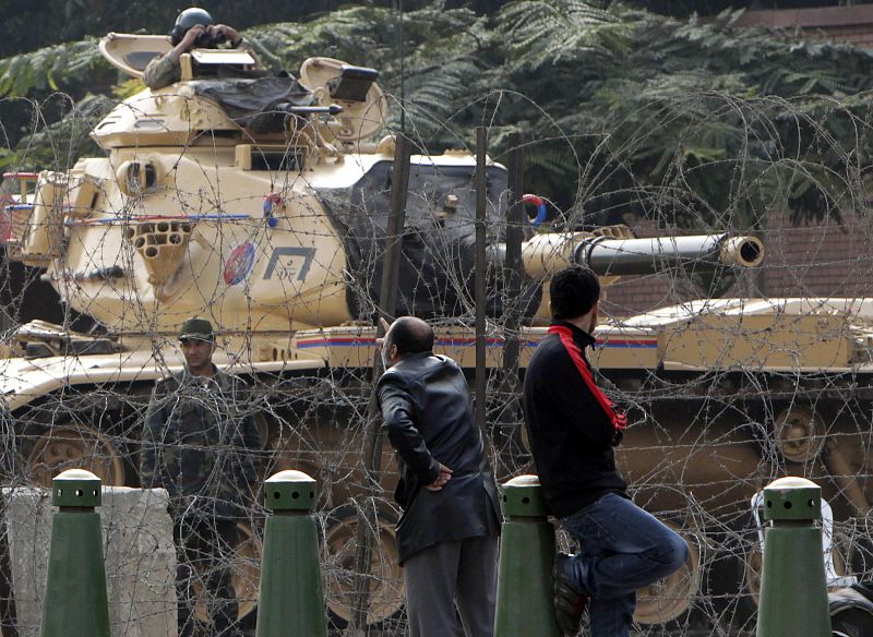 11.02.2011Un manifestante contrario a Mubarak pide su marcha frente al palacio presidencial de El Cairo, lugar protegido por el ejército egipcio (11/02/11).REUTERS -